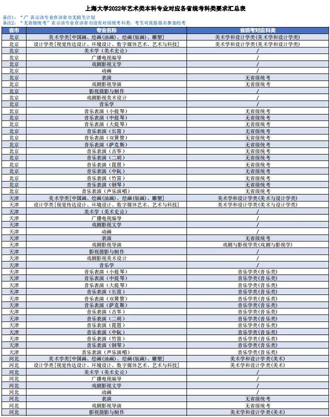 校考 | 上海大学2022年艺术类本科专业对应各省统考科类要求