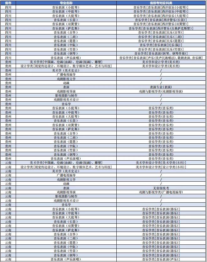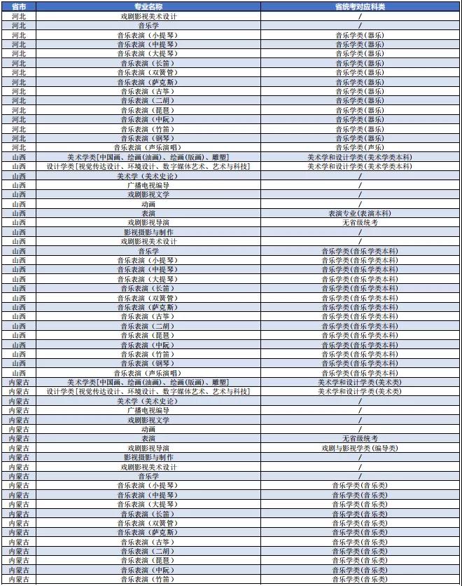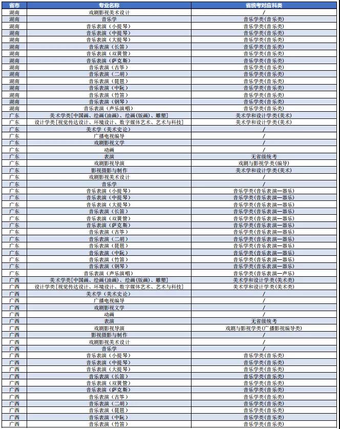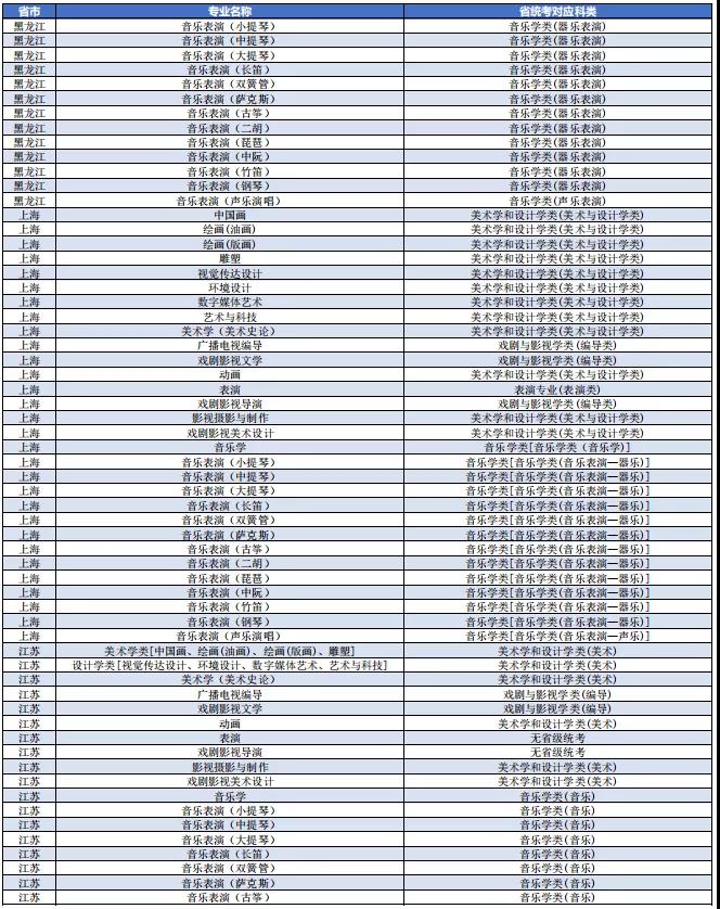 根据《教育部关于进一步加强和改进普通高等学校艺术类专业考试招生工作的指导意见》(教学〔2021〕3号)和《教育部办公厅关于做好2022年普通高等学校部分特殊类型招生工作的通知》(教学厅〔2021〕7号)等文件要求,现公布我校2022年艺术类本科专业对应各省统考科类要求,具体详见附件。