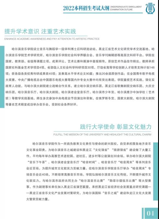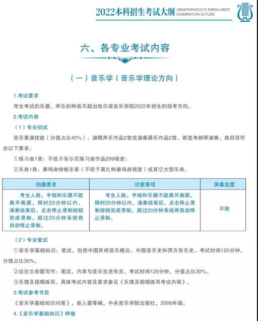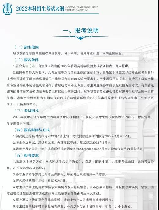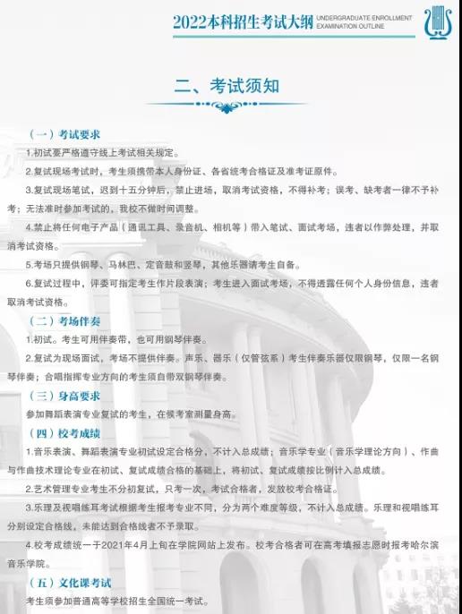 1月中下旬考试!哈尔滨音乐学院2022年本科招生考试大纲