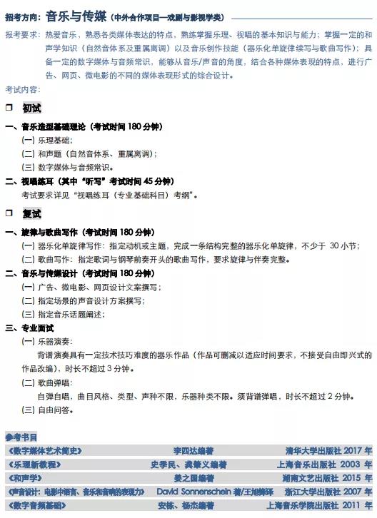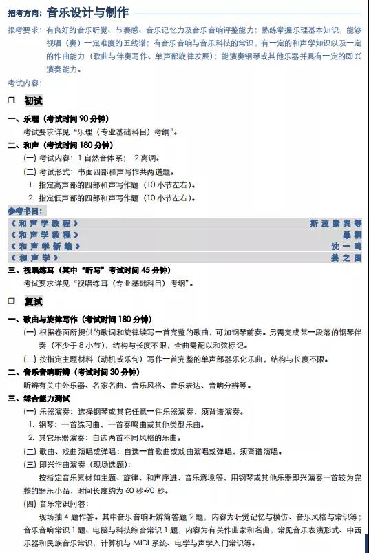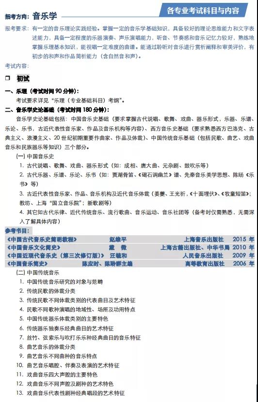 上海音乐学院2022年本科招生专业目录及考试大纲