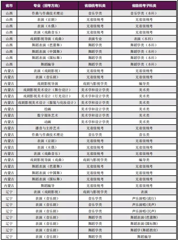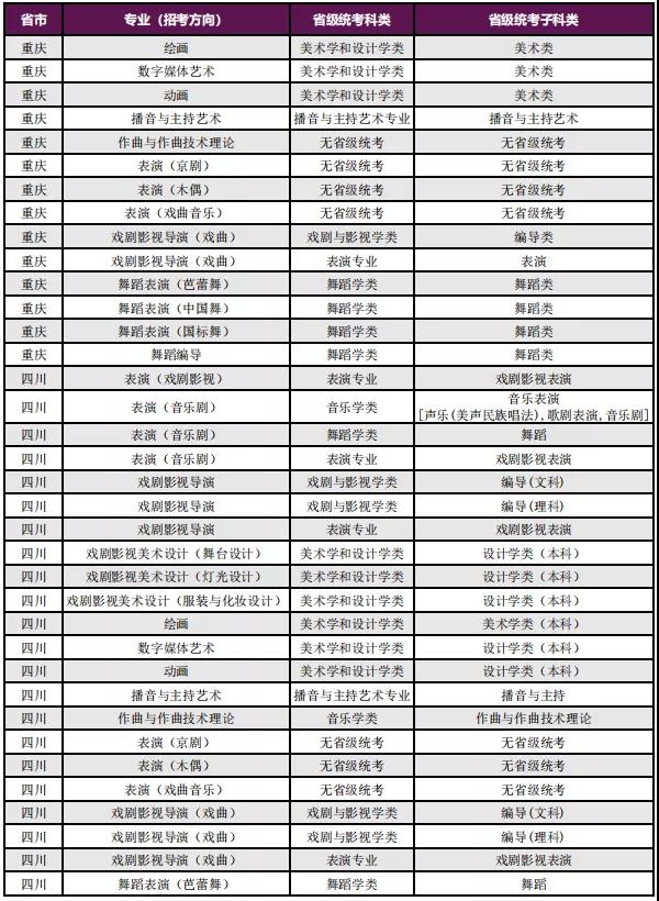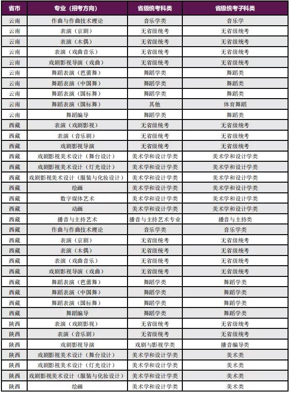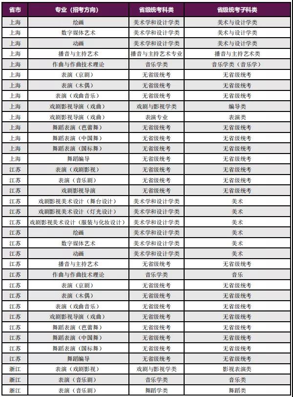 一、艺术类校考专业