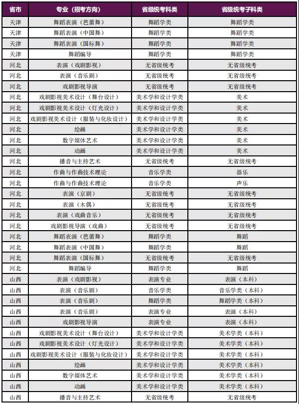 1. 2022年我校“普通类本科第一批次”招生专业不设校考,无需参加省级统考,编制分省招生计划,拟招生专业包括:戏剧影视文学、戏剧学、戏剧教育、艺术管理、广播电视编导、影视摄影与制作。