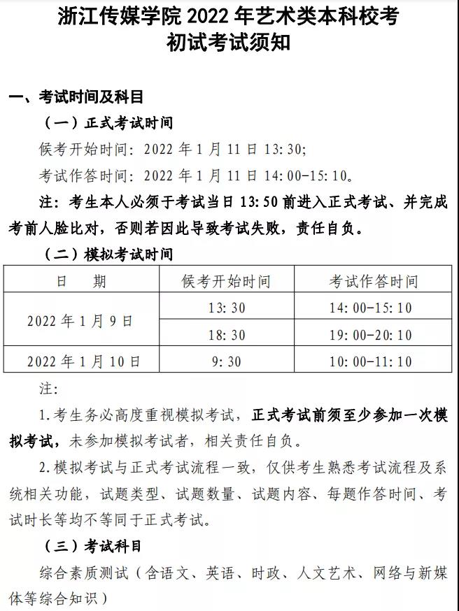 浙江传媒学院2022年本科专业初试考试须知&考试操作说明