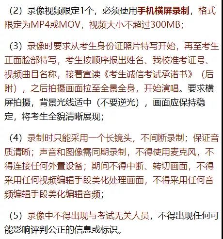 中央音乐学院2022年声乐歌剧系初试一轮视频录制及上传要求