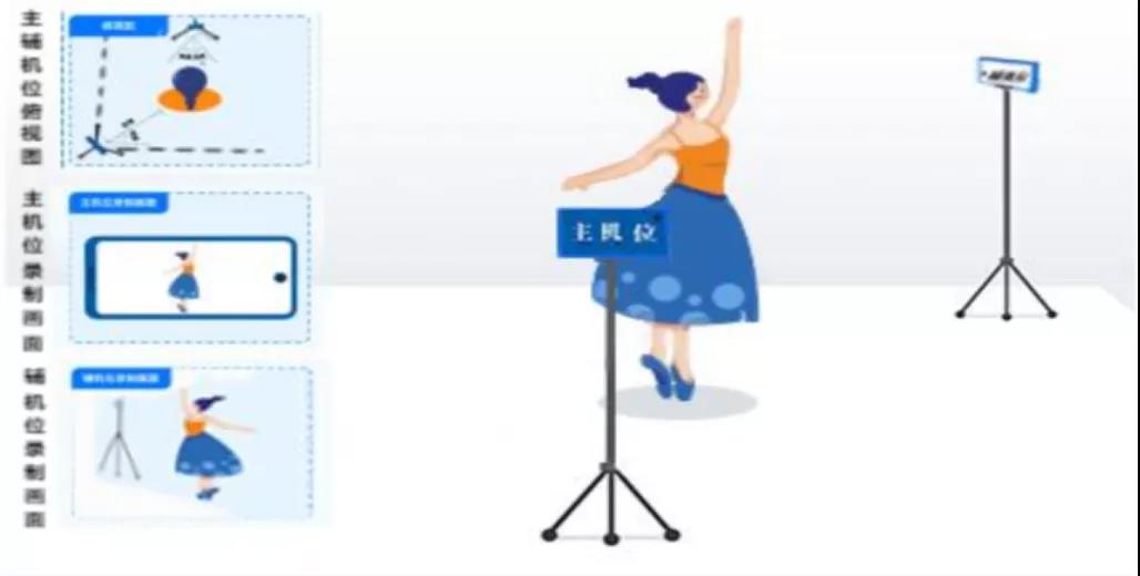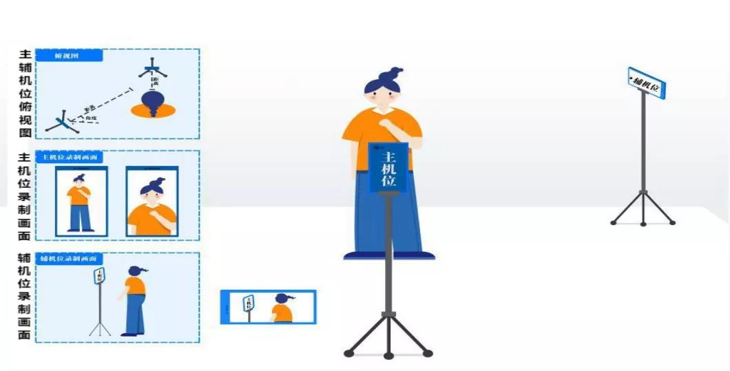 【主机位根据考试科目要求确定拍摄方向(横屏或竖屏)及拍摄范围(半身或全身),辅机位横屏拍摄(考试全场监控,拍摄范围含:考生及周边),考生全程不能离开视频拍摄范围】