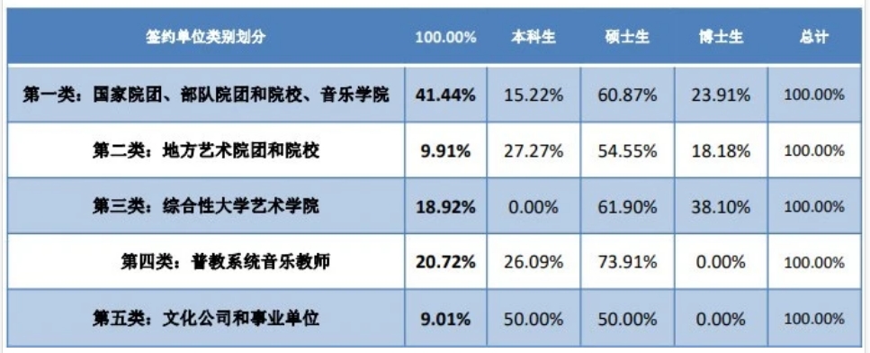 我们以音乐类的中央音乐学院为例,根据中央音乐学院2022届毕业生的签约情况,我们可以看到,这些“铁饭碗”职业涵盖了教育、文化和艺术等多个领域。其中音乐编制教师占比为20.72%,事业单位的本科生占为9.01%,院剧团等事业单位占比为70.29%,公务员就业情况未知;也就是说本科生想走“铁饭碗”还是很有希望的。