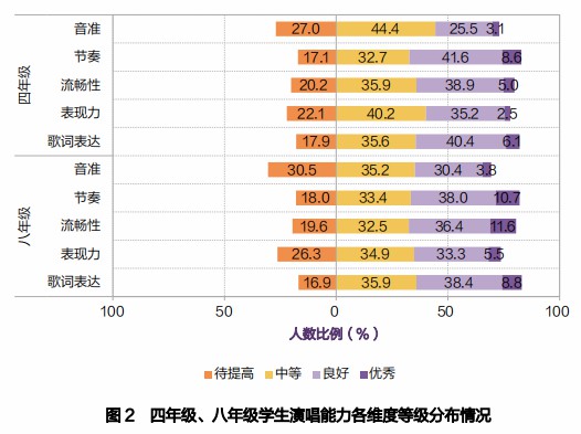 报告中指出:本次监测从学生演唱的音准、节奏、流畅性、表现力、歌词表达五个维度对学生的演唱能力进行了等级评定。而这五个维度恰恰与艺术类高考中的乐理、视唱、练耳息息相关。