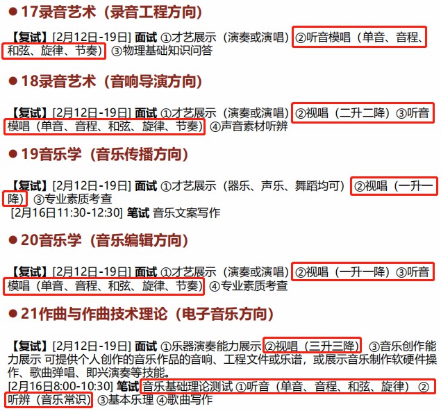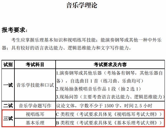中央音乐学院、中国音乐学院等院校的音乐校考中,对视唱练耳、乐理也有不同程度的要求,为内容。