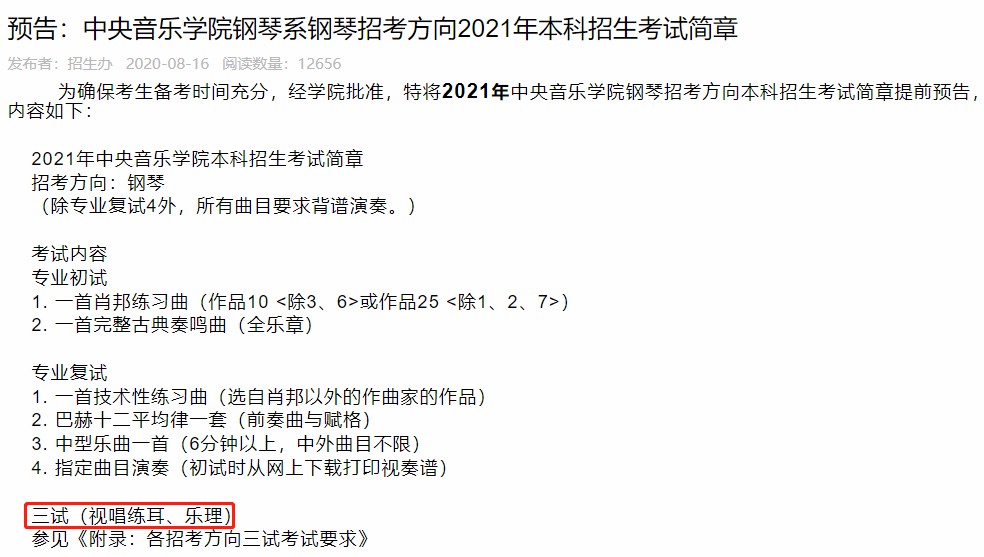 中央音乐学院2021年本科招生考试简章▼