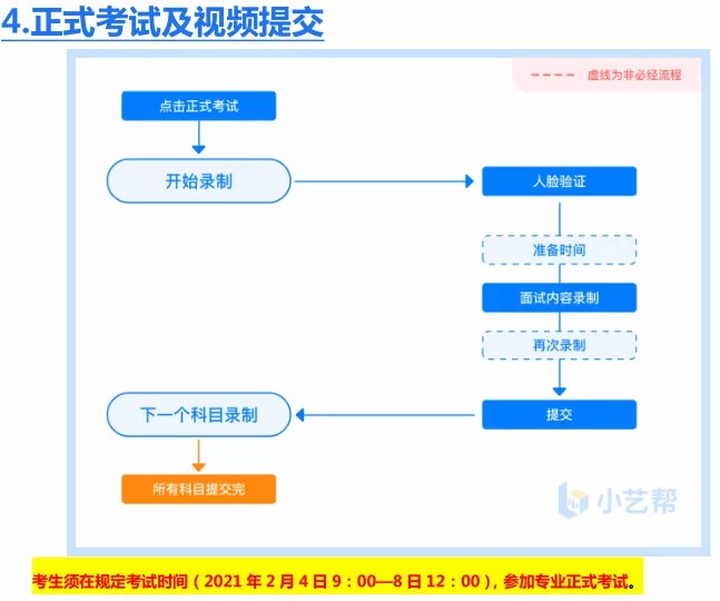 正式考试(线上录制和上传视频):2021年2月4日9:00—8日12:00