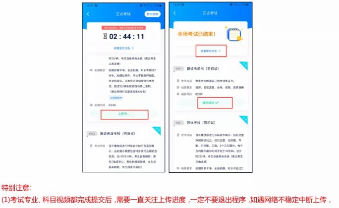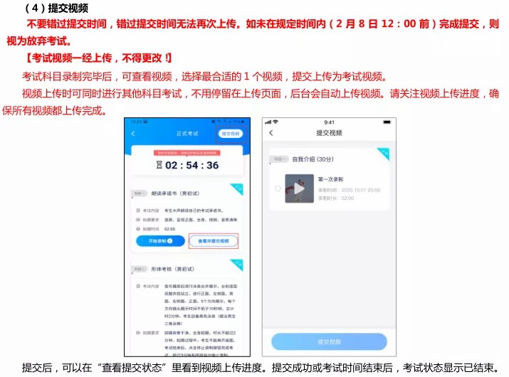 1、视频录制要求主机位和辅助机位的两部手机一镜到底不间断录制,录制全程不允许静音,不得随意切换拍摄角度,不得做任何打招呼和有暗示性的言语行为,不得出现任何可能影响评判公正的信息或标识(如含考生信息的提示性文字、图案、声音、背景、着装等),更不得出现考生姓名、生源地、考生号、证件号、就读学校、培训机构等相关信息。不得采取任何视频编辑手段处理画面,必须保持作品完整真实。