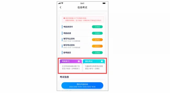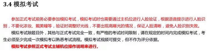 是考生熟悉操作流程、考试顺利进行的必要步骤。所有考生都必须在正式考试前按规定的时间自行进行至少一次,所有步骤与正式考试相同。若因未参加,后期无法正常参加考试的一切后果由考生自行承担。