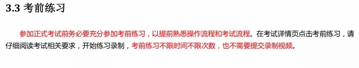 2、正式考试时,考生不得录屏、截屏、投屏、锁屏,否则因此导致考试失败,责任自负。