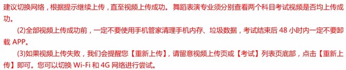 (7)务必检查网络信号,建议是稳定的 Wi-Fi 或者 4G 网络,考试全程网络环境正常,避免出现断网情况导致视频提交失败。