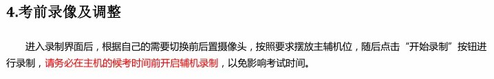 (3)为考试过程不受干扰,建议考生准备拍摄背景单一、安静无杂音的场所,注意避免或减小风声、手机铃声等杂音,光线充足,拍摄视频画面清晰。