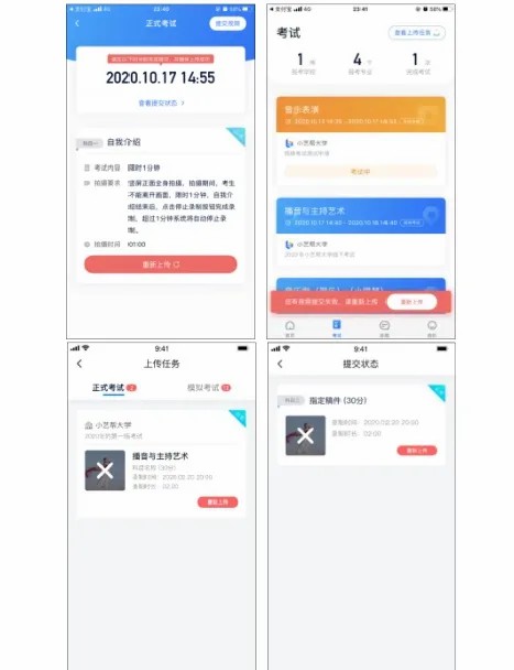 3、展示结束后,考生按小艺帮APP考试平台的指令将答题纸按顺序拍照上传,务必照片完整清晰,完成所有答题纸页面都拍摄上传成功后,再进行考试视频的提交。待小艺帮APP考试平台确认提交后方可退出考试平台。线上考试操作步骤详见“浙江音乐学院2021年全日制本科招生专业校考(初试)笔试类视频制作操作说明”。
