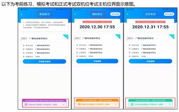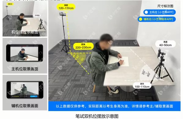 考生的考试过程要求全程不间断、双机位不同角度监控拍摄。