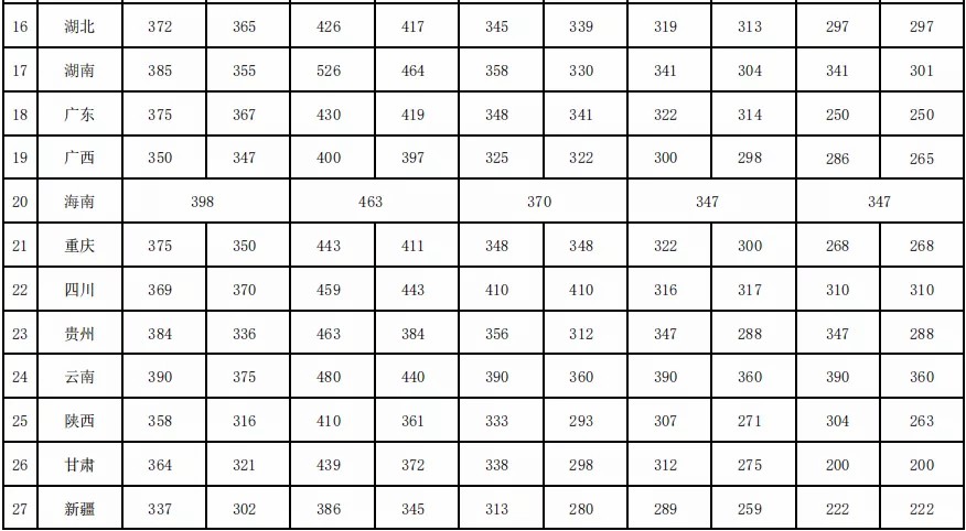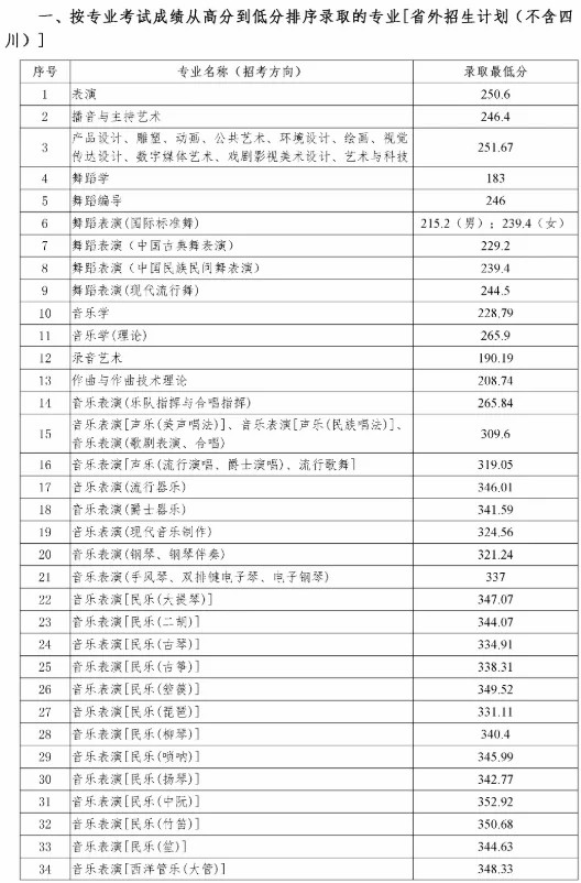 1、非湖北省音乐学专业(音乐教育、音乐学理论、音乐管理、音乐心理与治疗、戏曲音乐、钢琴调律)方向340分;