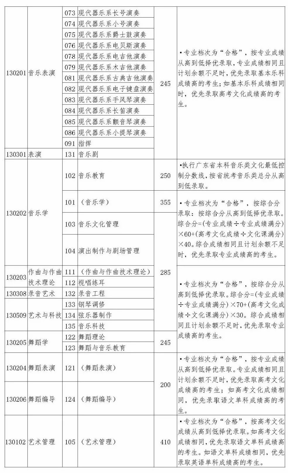 三、艺术史论及艺术管理专业,在达到各省文化课录取控制分数线的条件下,按照专业审核合格并且志愿填报我校考生的高考文化课成绩由高到低依次录取。