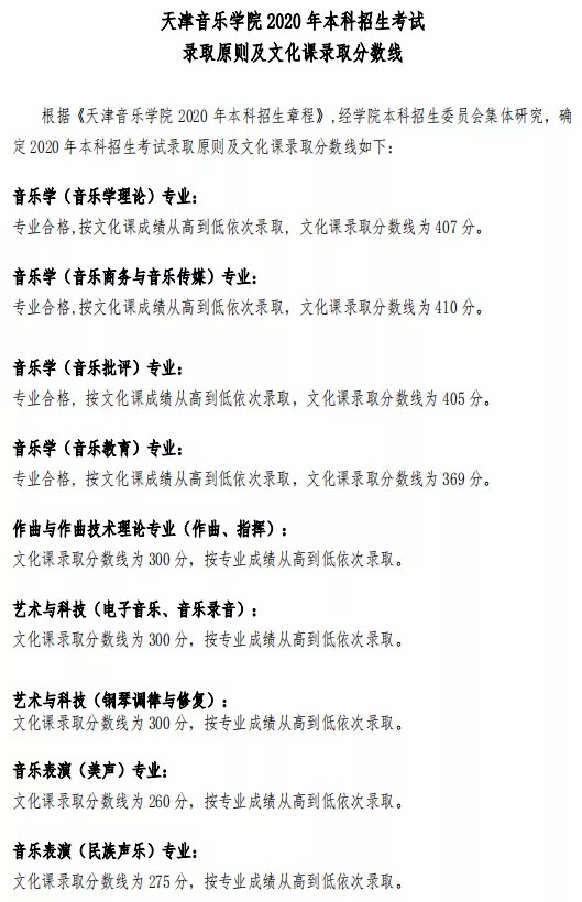 8、湖北省音乐学专业(音乐学理论、音乐管理、音乐心理与治疗)方向按照《省招委关于湖北省2020年普通高校招生录取控制分数线的通知》中艺术类本科分数线执行。