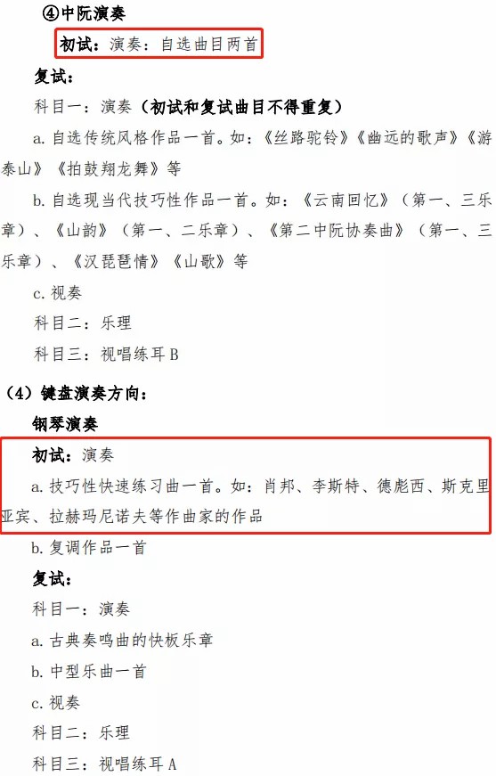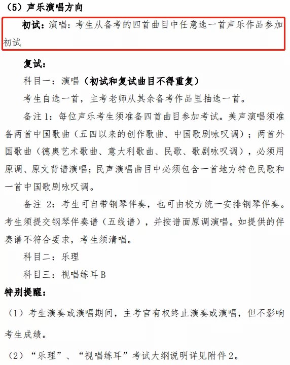 6.声乐演唱专业若无钢琴伴奏,可使用音频伴奏或者清唱,不影响考试成绩。