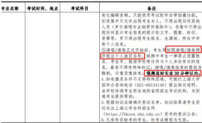 4.演唱/演奏正式开始前,考生须按照演唱/演奏顺序报出个人曲目名称,演唱/演奏结束时需起身鞠躬,示意录像结束。以上视频只能采用一个长镜头不间断录制,总时长在30分钟以内(不包含语音指令播放时间)。