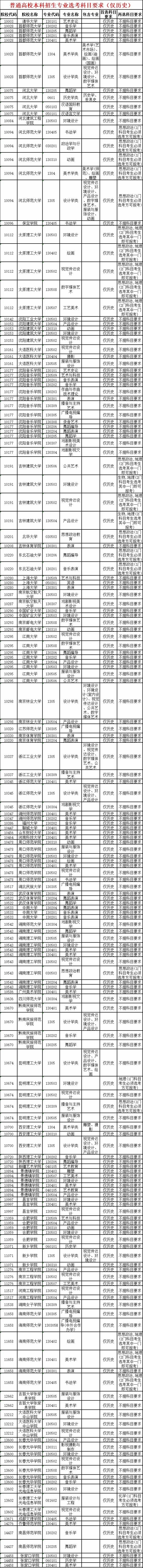 艺术类大部分专业要求科目为物理或历史均可,不提再选科目要求,音乐、舞蹈、播音主持、数字媒体、书法等专业有选考科目要求的高校一般也要求主选历史。今天小音就汇总了仅限选历史考生报考的院校及专业,考生们一定要注意啦!未选或错选是不能报考的哦!