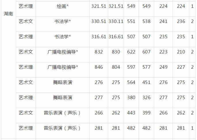 一、陕西省:音乐学、音乐表演、作曲与作曲技术理论、录音艺术、舞蹈编导、舞蹈学、舞蹈表演、艺术与科技专业高考文化课录取控制分数线艺术类文科为304分,艺术类理科为263分。