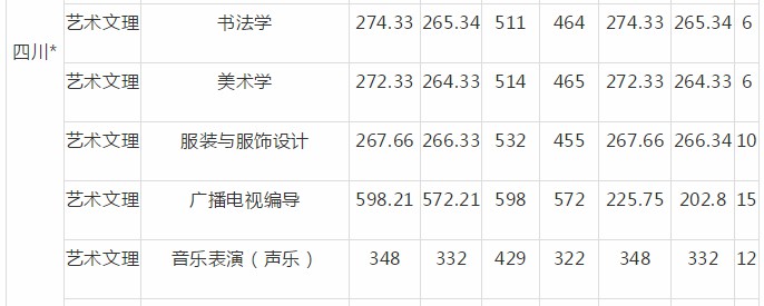 四川大学2020年艺术类本科专业录取分数线