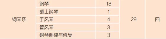 钢琴系:2020年招生30人,2021年招生29人,减少1人。其中电子管风琴2020年招生1人,2021年停招。