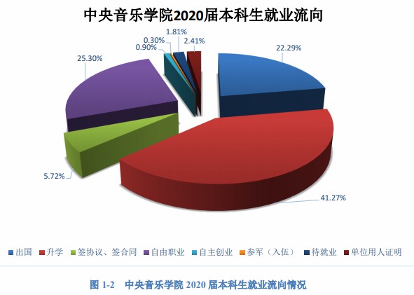 据中央音乐学院通过官网公布的《2020届毕业生就业质量年度报告》披露:
