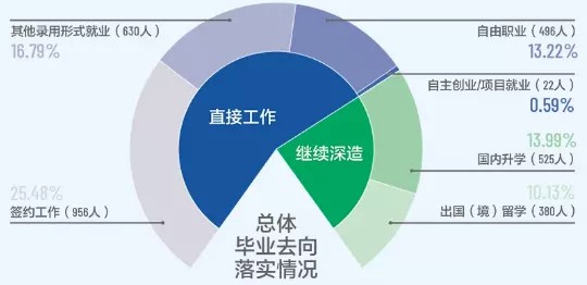 中央音乐学院2020年毕业生流向情况数据表中、自由职业、出国占据前三。足以看出,作为音乐高校的学生,在艺术成长道路上也有更高的追求,不断提升自己。