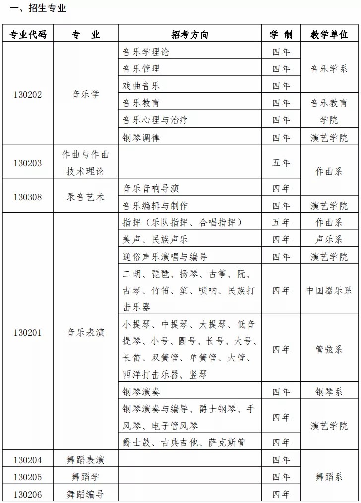 11所音乐学院2021考试形式和招生专业