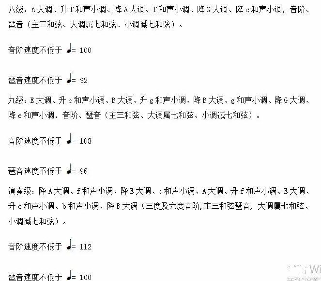 我们来对比一下中央音乐学院校外音乐水平考级《考级细则》(2021年版通用)中对于速度的要求。