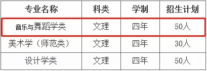 音乐与舞蹈学类包含音乐学(师范类)和音乐表演两个专业,设计学类包含视觉传达设计和环境设计两个专业,学生入学后先进行基础知识培养,再根据兴趣和双向选择原则进行专业分流。