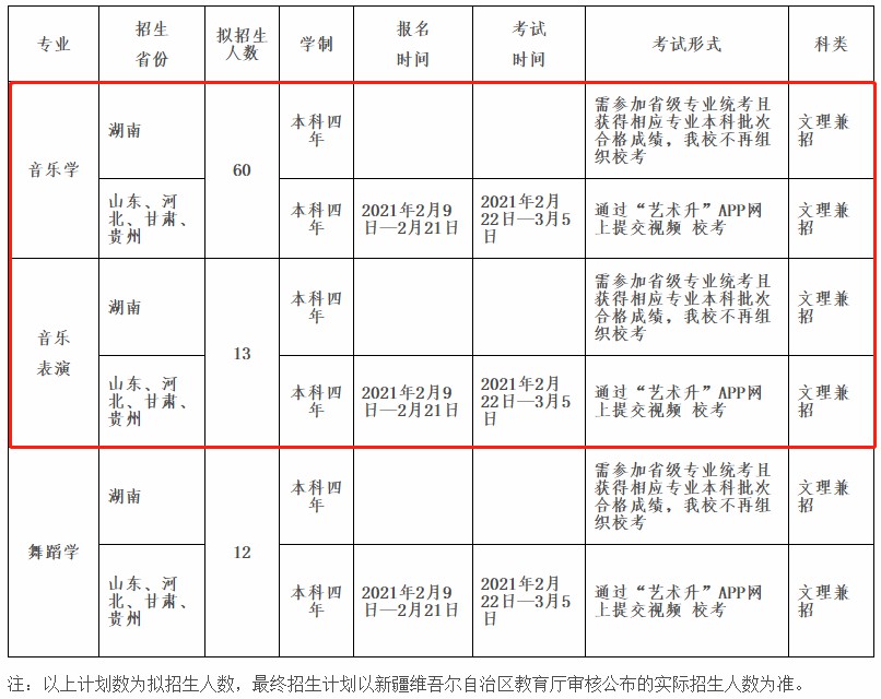 2021年音乐类招生专业、计划、考试形式及学制【适用于新疆】