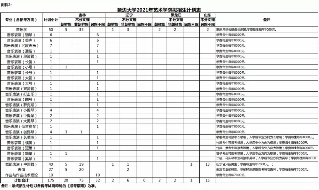 备注:各专业在相关省份招生计划、音乐表演专业各行当招生计划以各省级招生考试管理部门公布的为准。