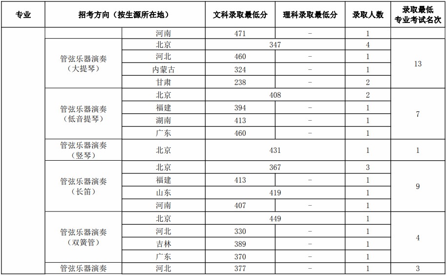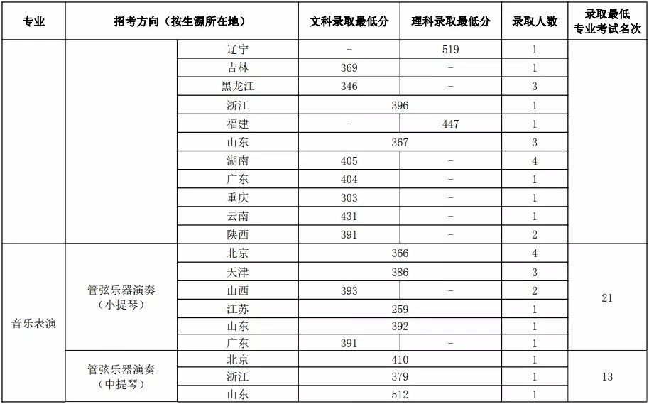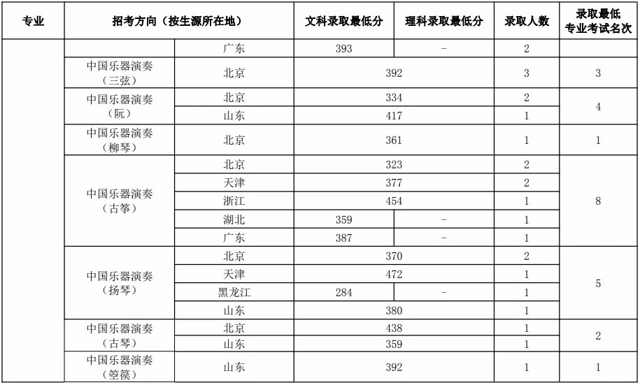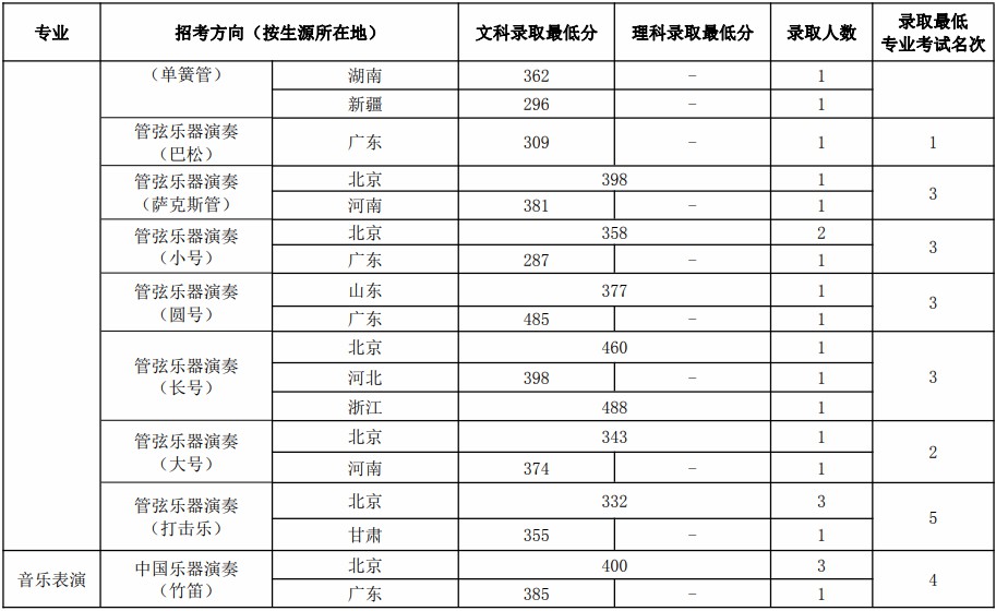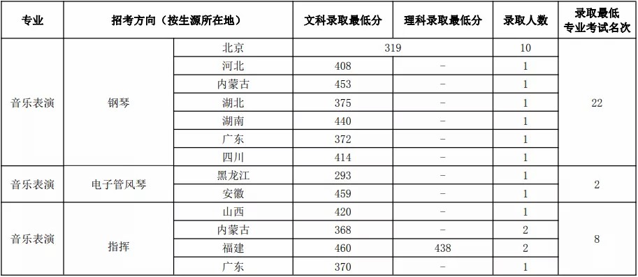 1、非湖北省音乐学专业(音乐教育、音乐学理论、音乐管理、音乐心理与治疗、戏曲音乐、钢琴调律)方向340分;