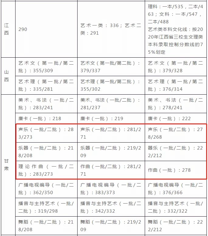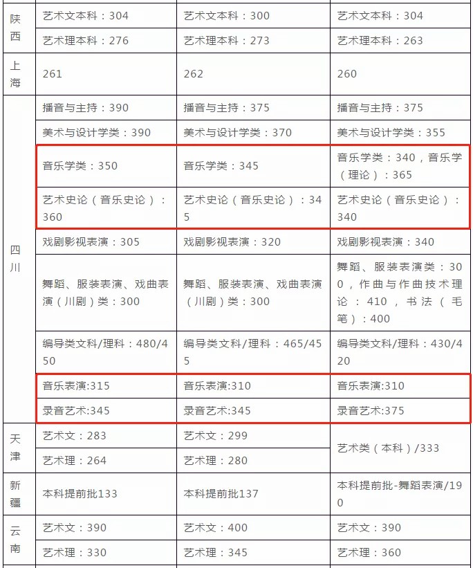 为此,小音搜集整理了近3年各省艺术类专业文化录取分数线,供艺考生们参考。大家可下拉至自己所在省份查询,2021年的各省提档线可以根据本表进行预估。