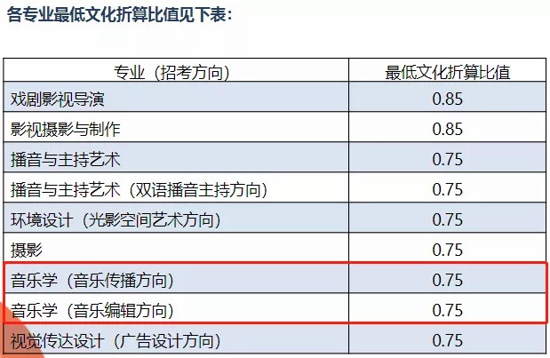 中国传媒大学音乐学(音乐传播、音乐编辑)低文化折算分0.75