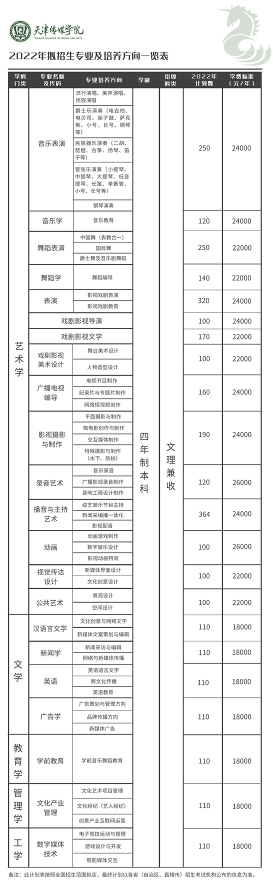 天津传媒学院2022年专业招生计划发布