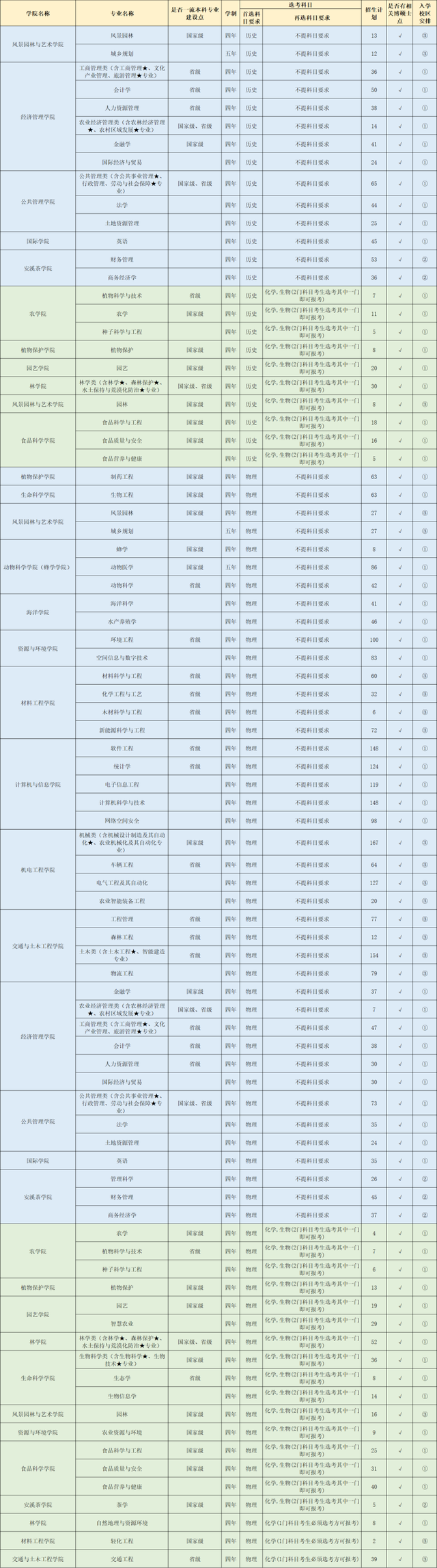 福建农林大学2022年本科招生计划发布