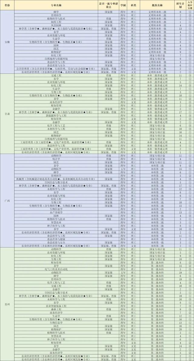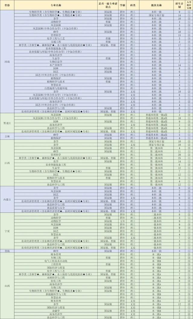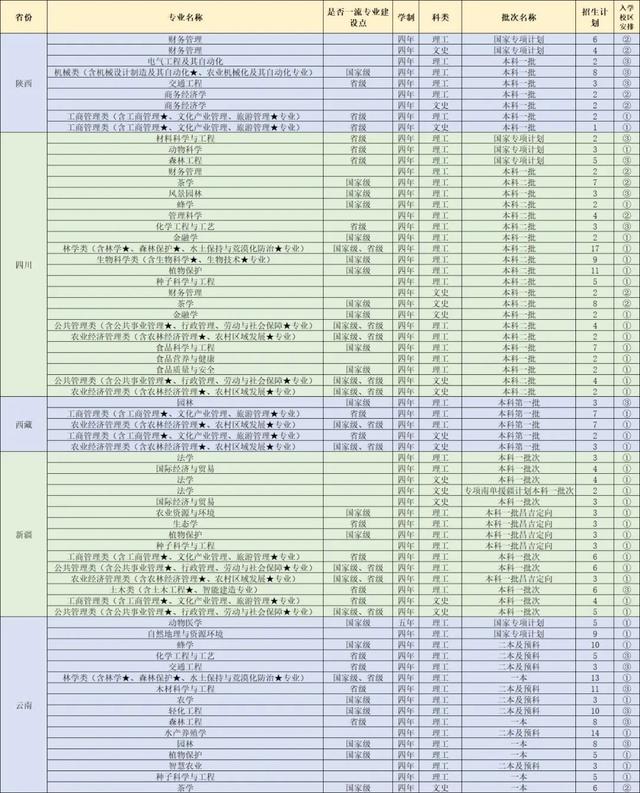 6、表格中包括新疆南疆单列计划招收法学2名。新疆昌吉定向招收植物保护、生态学、种子科学与工程、农业资源与环境、农业经济管理类(含农林经济管理、农村区域发展专业)各3名。