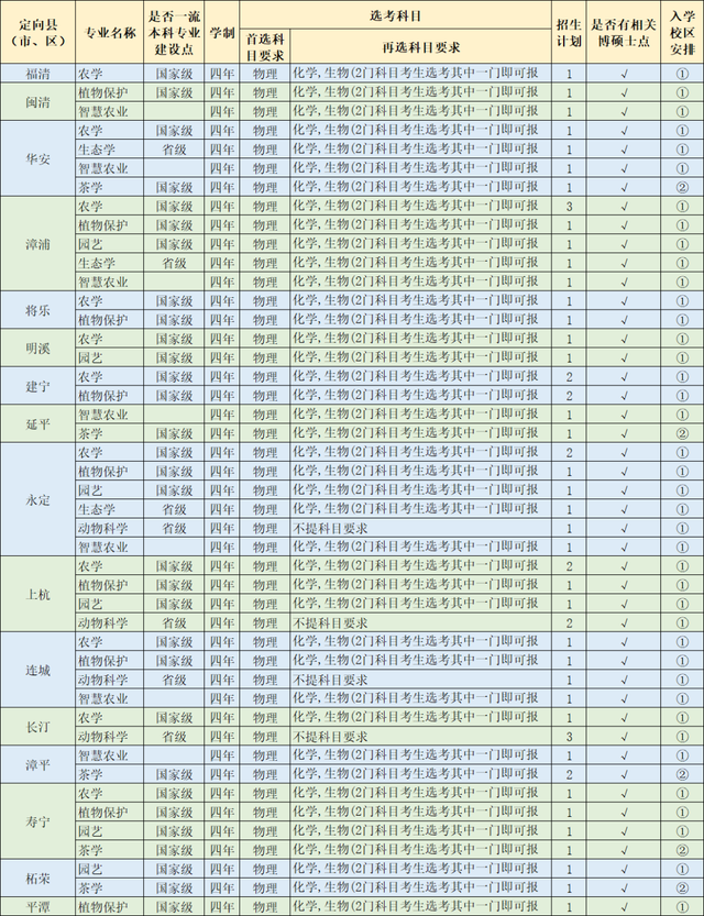 3、福建省乡镇农技推广紧缺专业定向委培生计划,具体详见学校招生章程以及福建省编制的计划本。