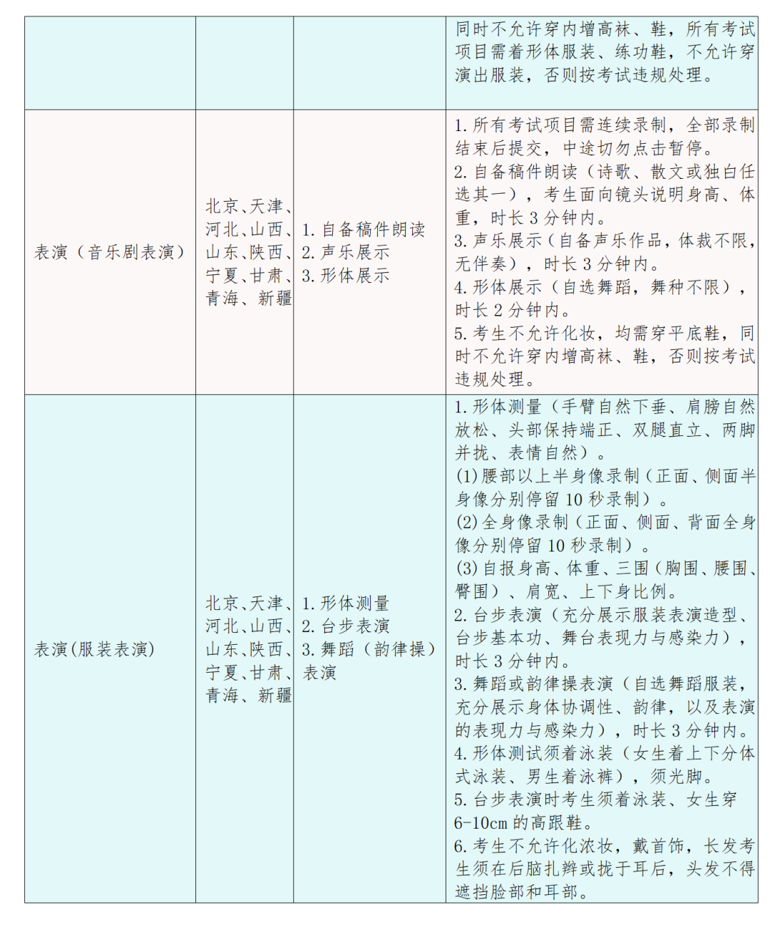 报考表演(服装表演)专业的考生,要求男生身高1.82米以上,女生身高1.68米以上。
