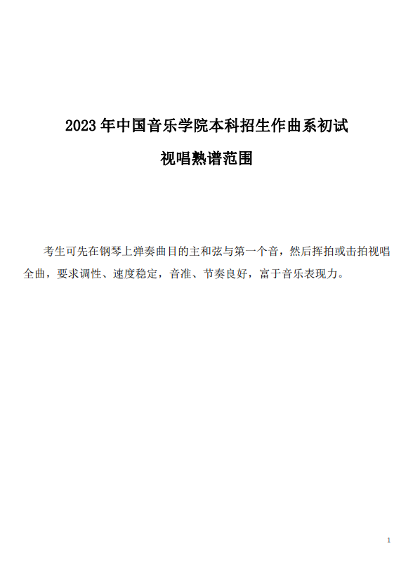 中国音乐学院2023年作曲系本科招生初试视唱熟谱范围