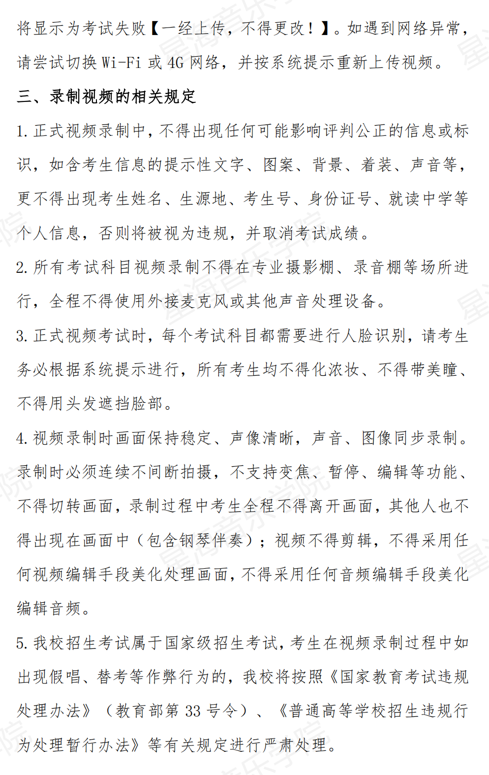 星海音乐学院2023年本科招生考试视频录制指引通知