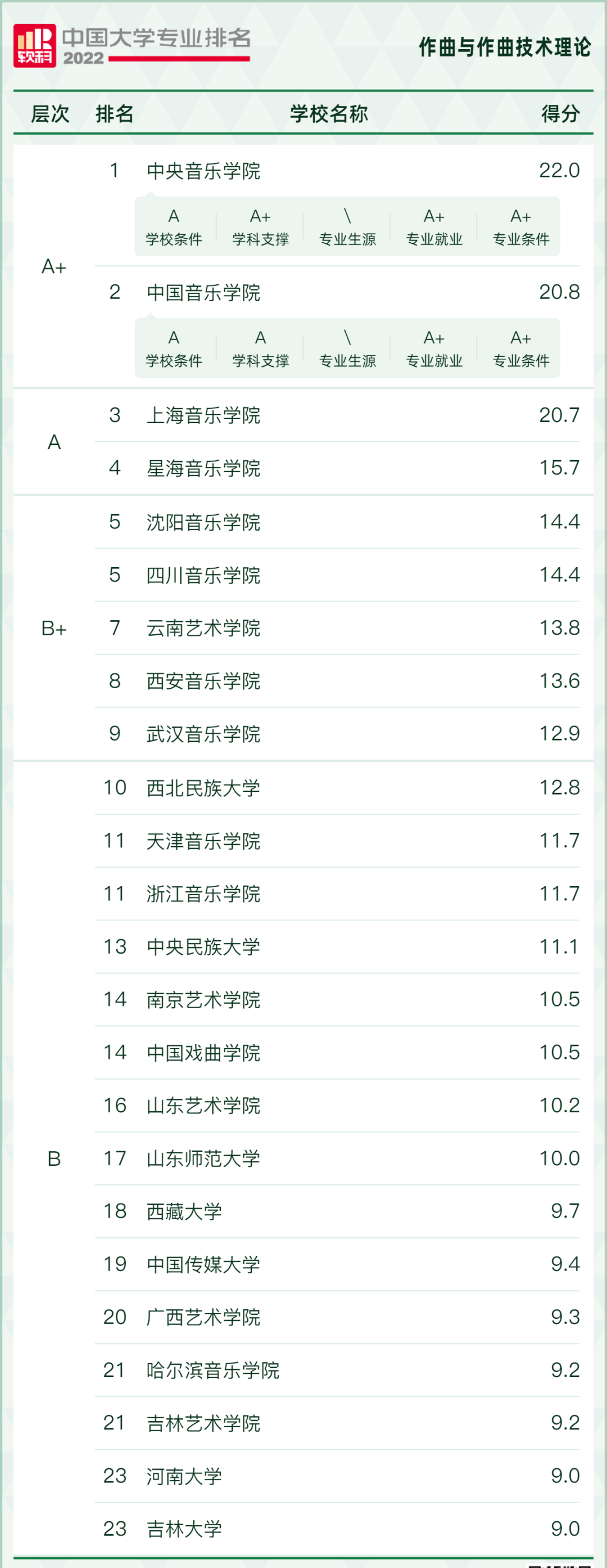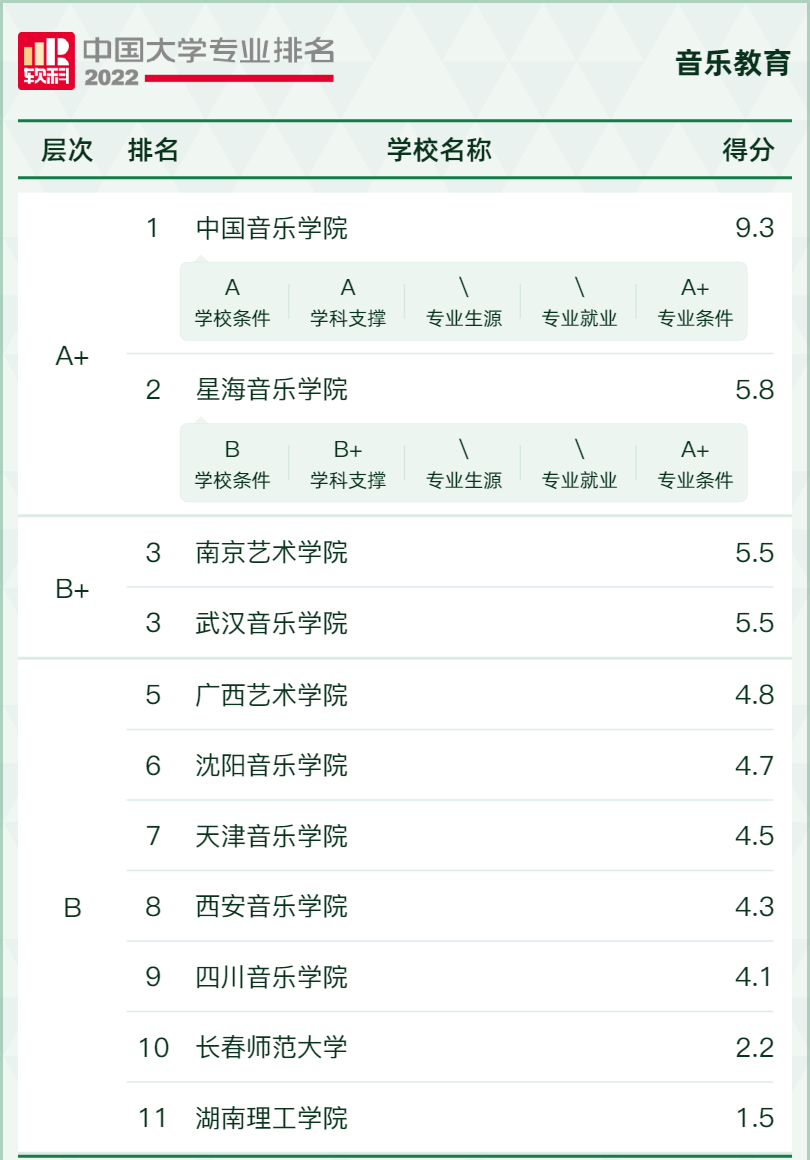 音乐生在选择专业的时候也是依据此排名进行院校报考,只有当报考院校综合评分高,专业精度高时,才是这个院校的强势专业!