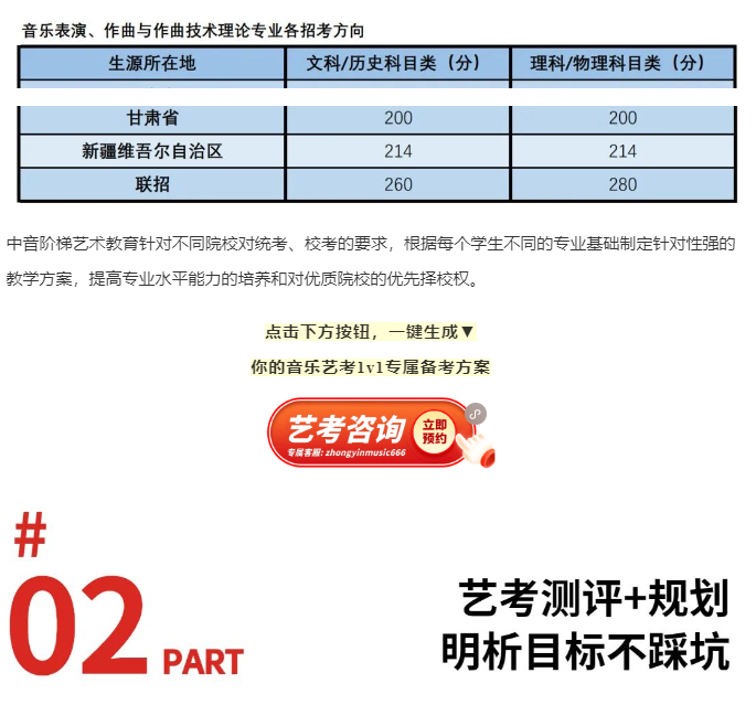 如果你还在观望,不知道自己能否走音乐艺考?如果你还不确定集训效果好坏,想要体验音乐集训课堂?那就联系我们领取一节体验课吧。不试怎么知道自己就不适合呢?