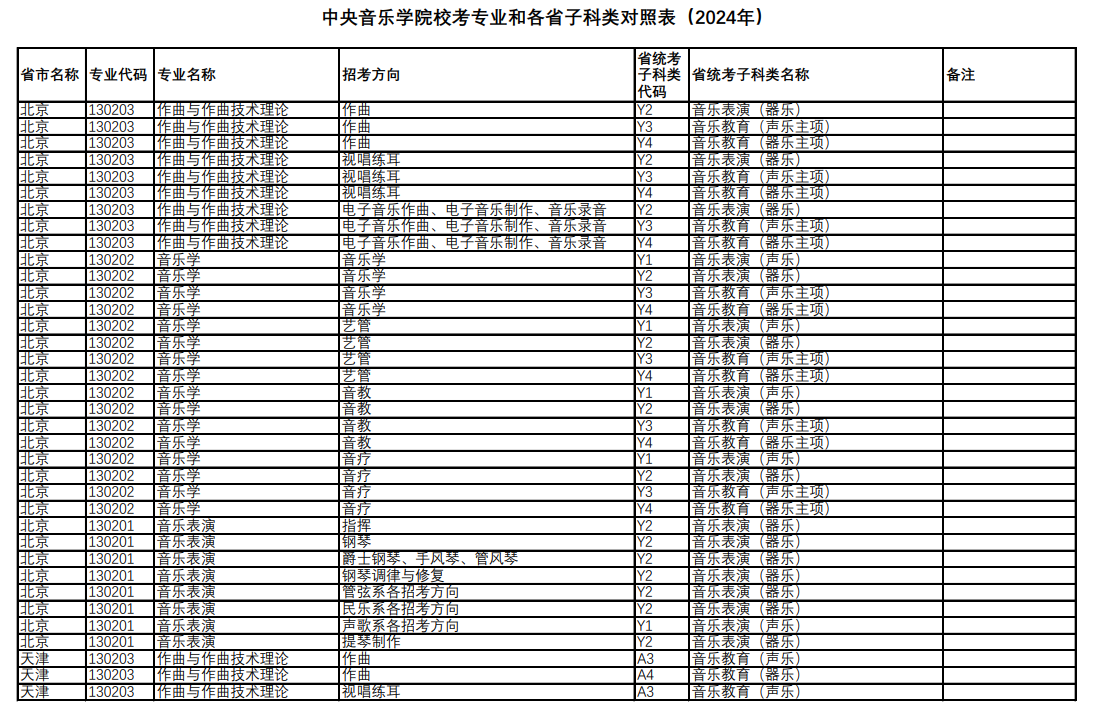 2024年算是艺考改革的很重要的一年,根据中央音乐学院2024年省统考子科目里边的内容发现,其中有部分在2023年无省级统考的专业,可能会在2024年要求省统考成绩合格。梳理条件如下:①辽宁、吉林、黑龙江、重庆:作曲(作曲、视唱练耳、电子音乐作曲、电子音乐制作、音乐录音)